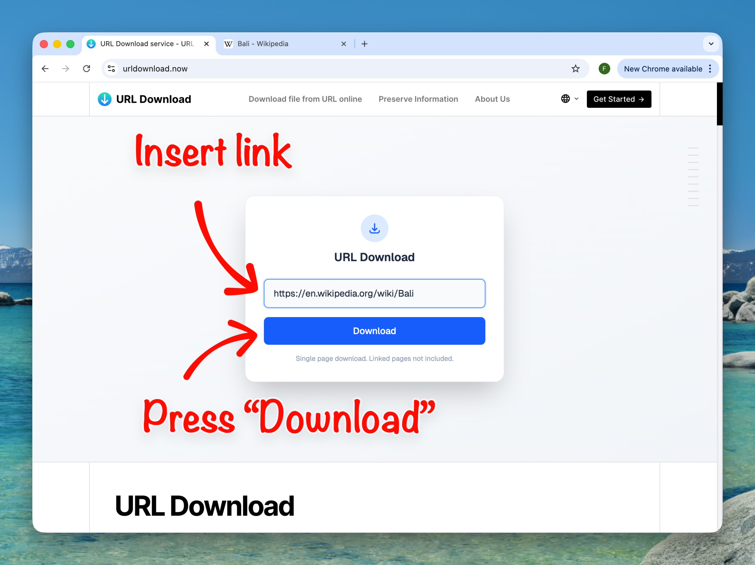 Сохраните веб-страницу, чтобы прочитать её позже, с помощью URL Download